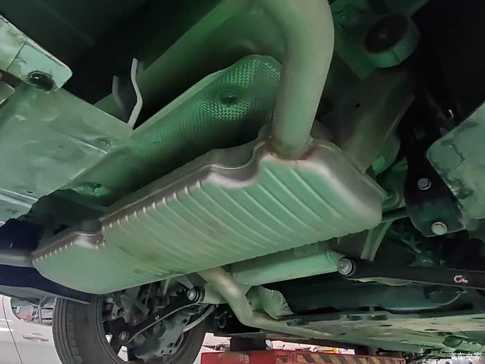 标致底盘不生锈不是假的,这消声器是钢的,不是铝合金,但它的确不生锈