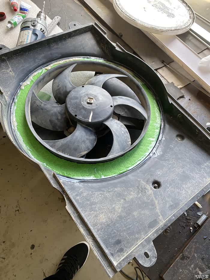 这是风扇装到原车风圈上,扇叶比较小,所以也要做风道把周围密封。