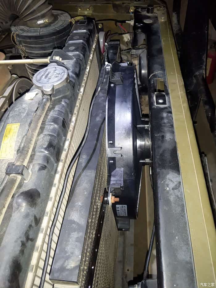 冷凝器是紧贴着水箱的,前面有个单独的空调电子扇,开空调单独电子扇转。