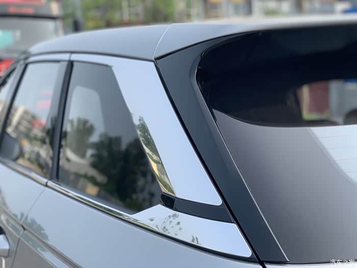 D柱这里用的是银色点缀,呈现出一种悬浮车顶的感觉,又让整个车身多了一丝时尚感。