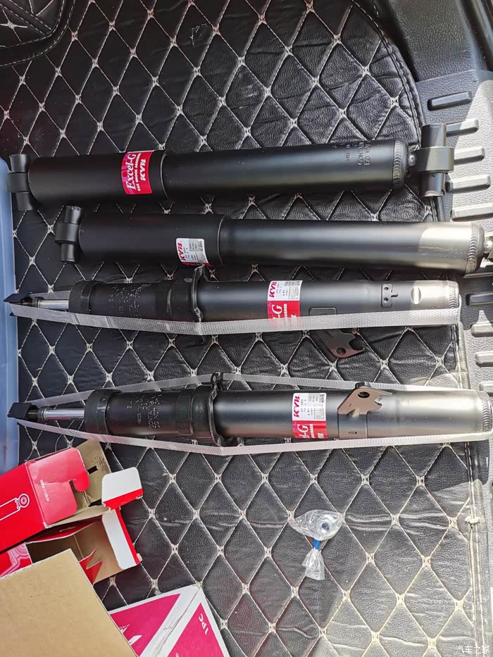 因为改了235—45—19的轮胎和19村寸轮毂,必须考虑原厂减震已经满足不了这要轮毂舒适的需求,KYB进口黑桶就是最佳选择