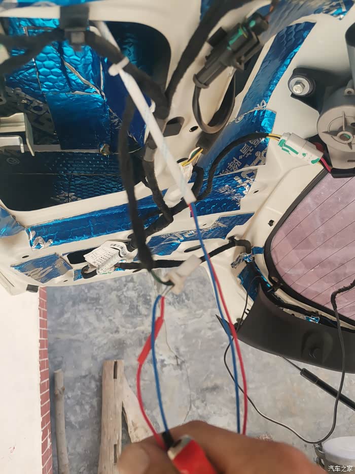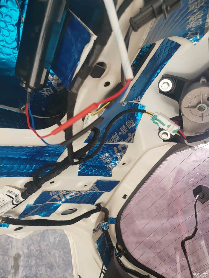 打开尾门拆下饰板,接的是尾门牌照灯的线