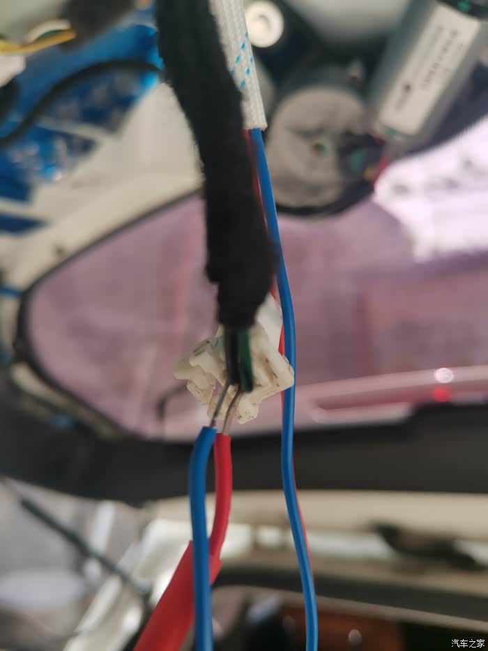 把线固定好,不想破线,所以就把正负极加锡后插进牌照灯插件的正负极