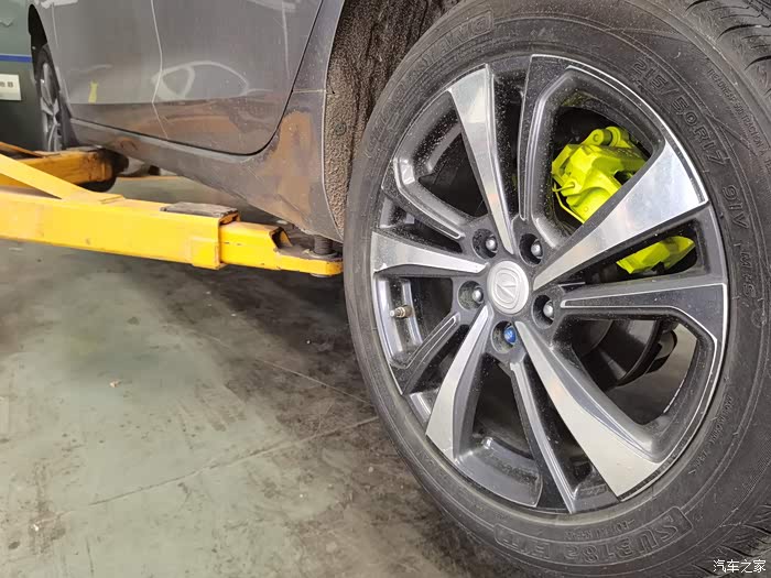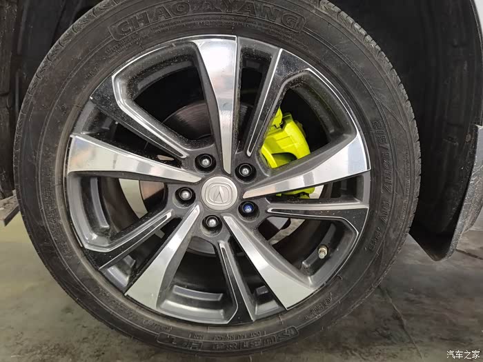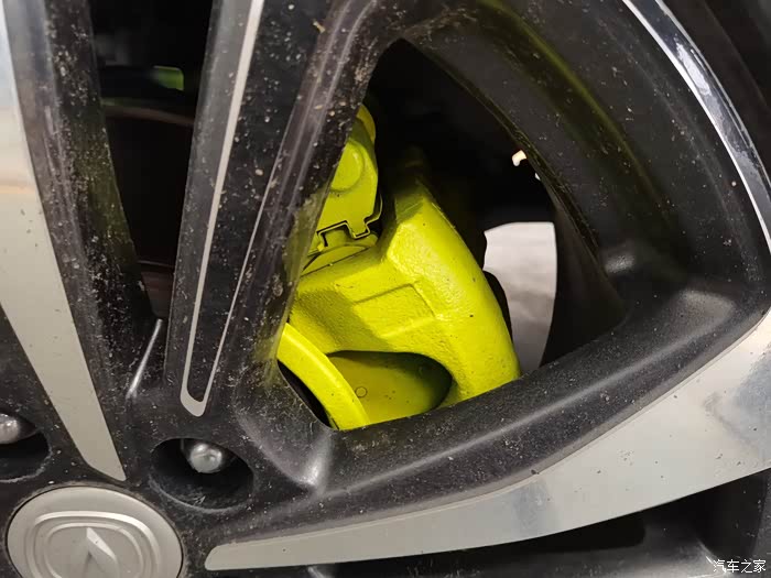 搭载的是17寸的轮毂,喷成了绿黄色的,卡钳颜色还是非常的鲜艳