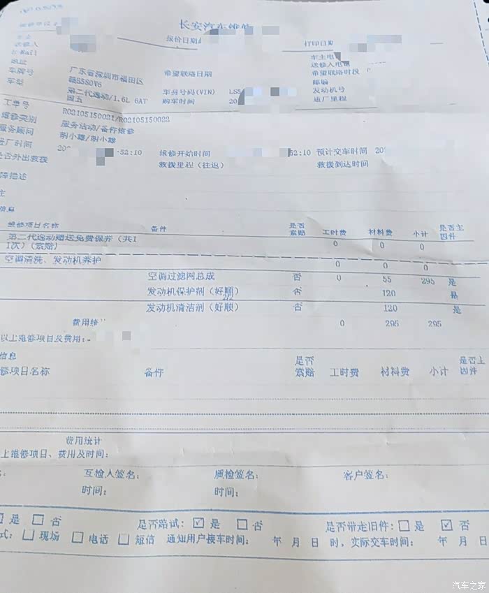 这是这次的保养清单,还是挺划算的吧,签完字,付了款,准备回家