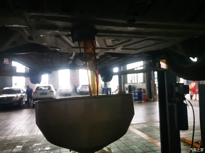 机油源源不断流出,颜色看上去还不是很黑,保养有点早了点