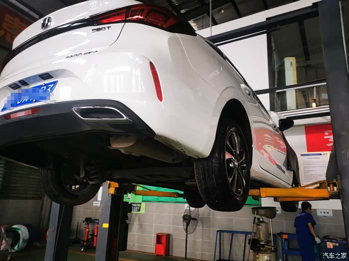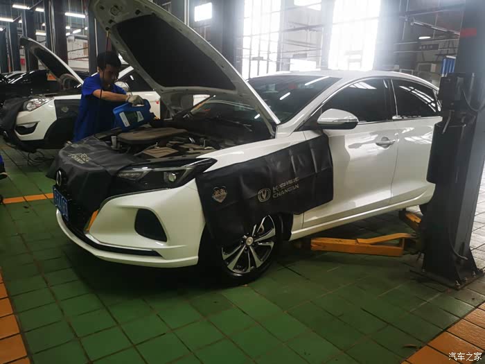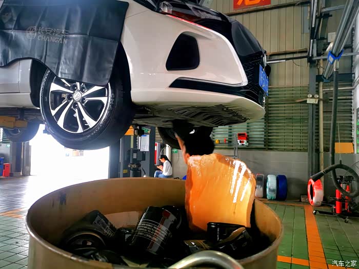 然后开到维修车间交给维修技师,这次保养更换了机油,机油滤芯,检查和清理了空气格和空调滤芯,还检查了全车灯光,底盘,轮胎胎压等,非常认真负责,整个保养过程让我们长安车主感到非常温馨,也对长安汽车售后服务点赞!好了,话不多说,下面就把爱车小逸保养过程分享给大家,上图!