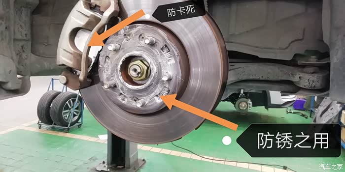 刹车片上好多粉尘,是因刹车过程片和碟的接合产生出来的,用沙纸磨一会,确保接触面平,因使用过程时,在下雨或洗车,沙子会掉在上面,那时用刹车,就有造成片和碟产生出条纹,接触不好,会使刹车效果降低,故要磨平
