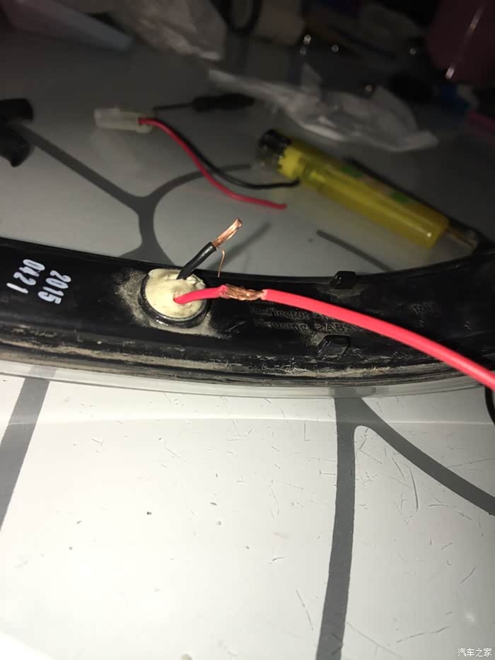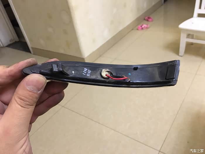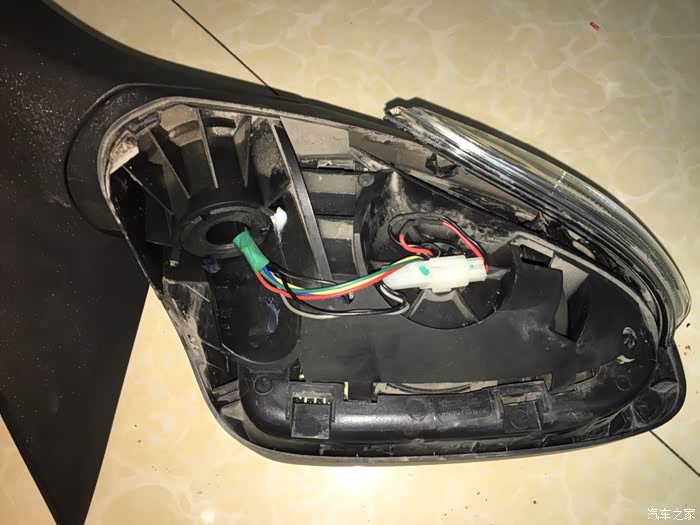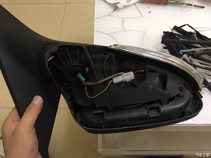 转向灯取出来了,怎么会,断线。唯一的解释就是以前磕碰的时候,后视镜瞬间形变,扯断(压断)了LED转账灯线
