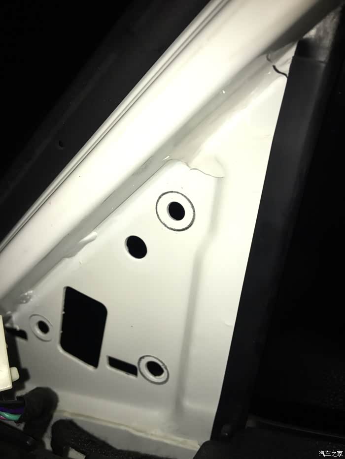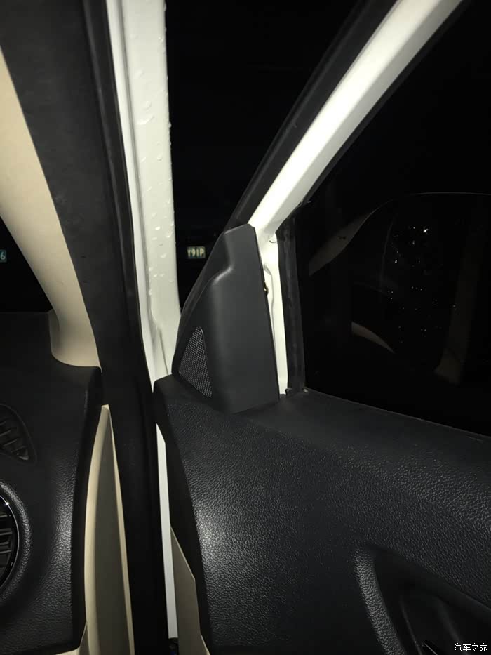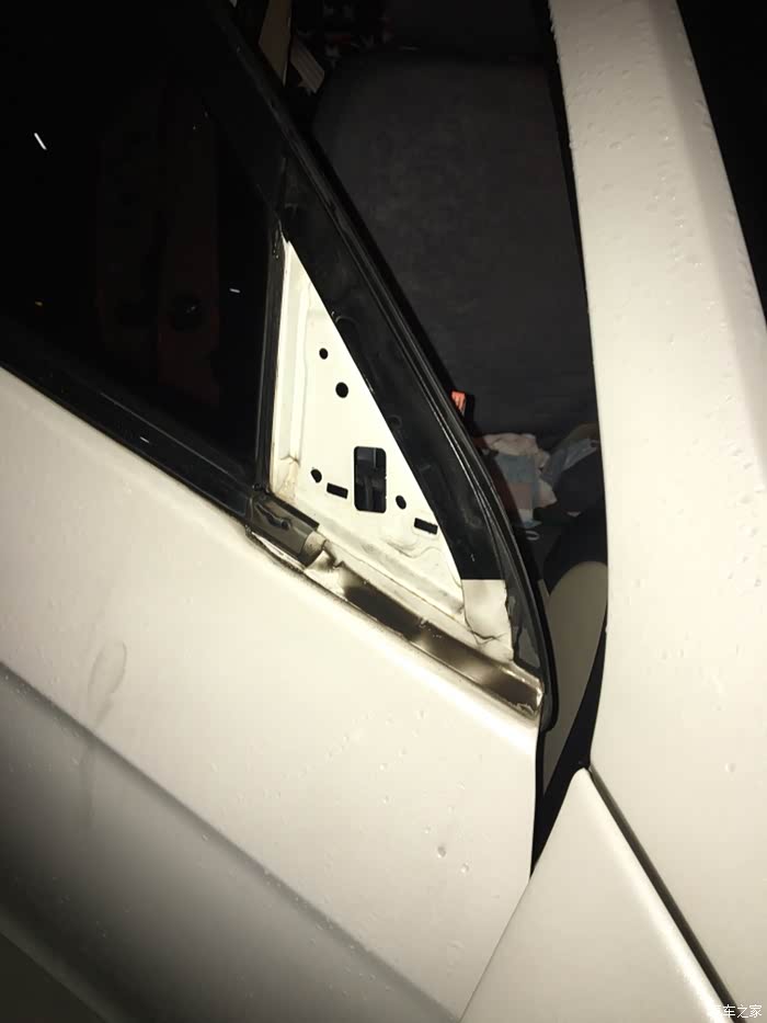 小三角内饰板是卡扣形式安装的,经过摸索,发现从这个位置下手最巴适。抠住小三角内饰板右上角,水平用力掰,如图上开了一个缝。在掰左侧。