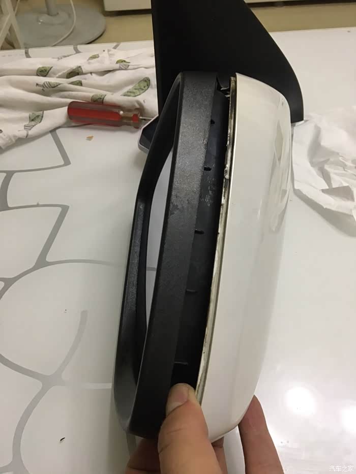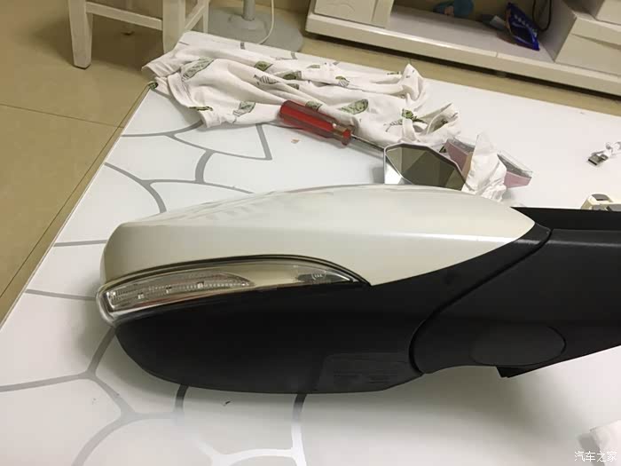 地下室黑黢黢的,所以后视镜就带回家里来拆卸了。