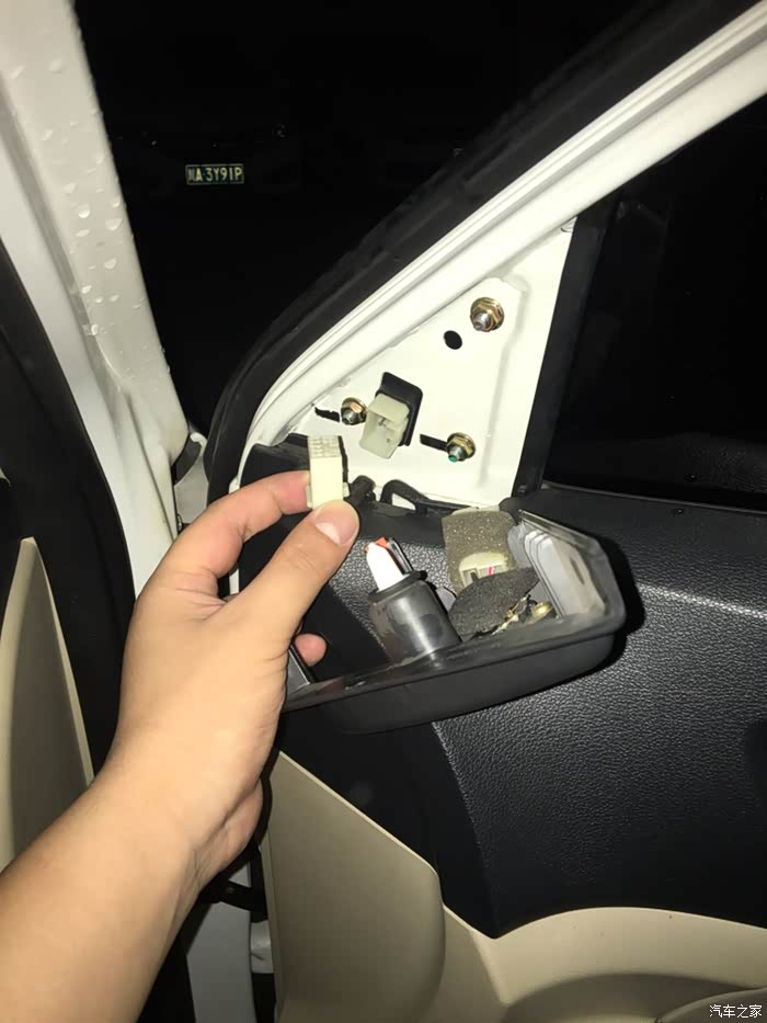 上周末要第一次上线年审了,在地下室特意检查了灯光,才发现右后视镜上的转向灯不亮了。特意问了问我姐,她也搞不清,似乎以前右后视镜磕碰过。所以我推测应该是把LED转向灯给碰坏了,询问得知,只有换总成,但我觉得不划算,所以并没有想处理,将就用吧。前几天新买的修车工具到了,手痒,想拆了后视镜看看LED转向灯还有没有自己修复的可能