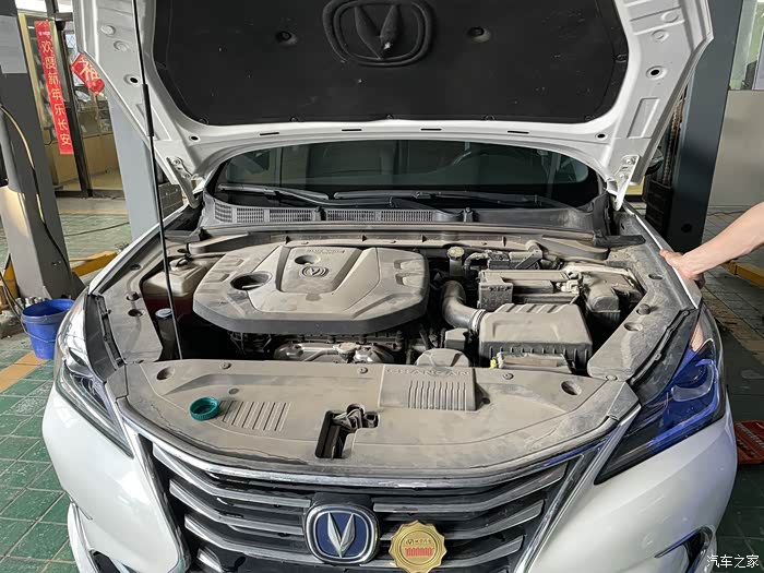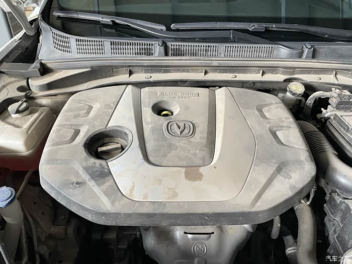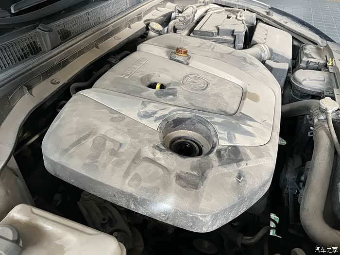 发动机舱有些尘土,显得脏了。