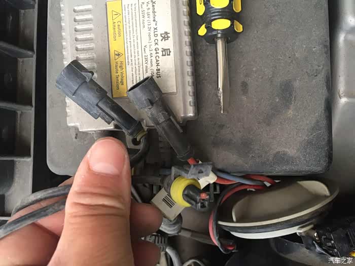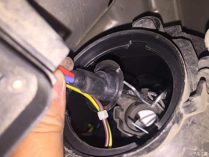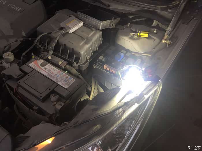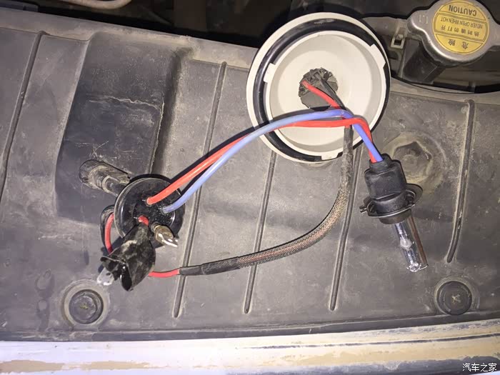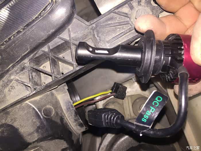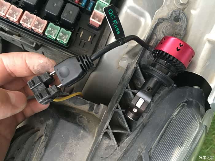 接着把原车的插头插在LED的插头上,试一试能不能点亮,因为LED是分正负极的,不亮就反过来插就行了