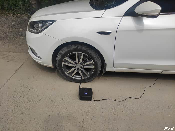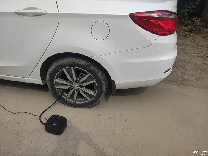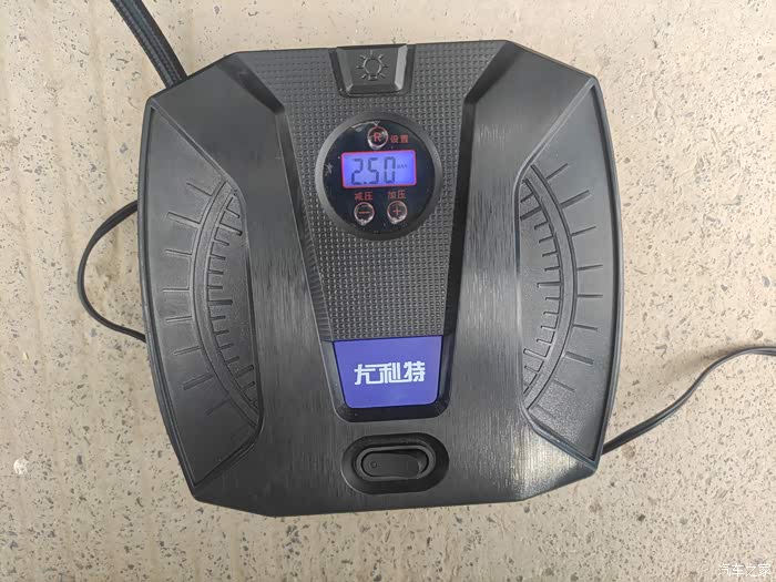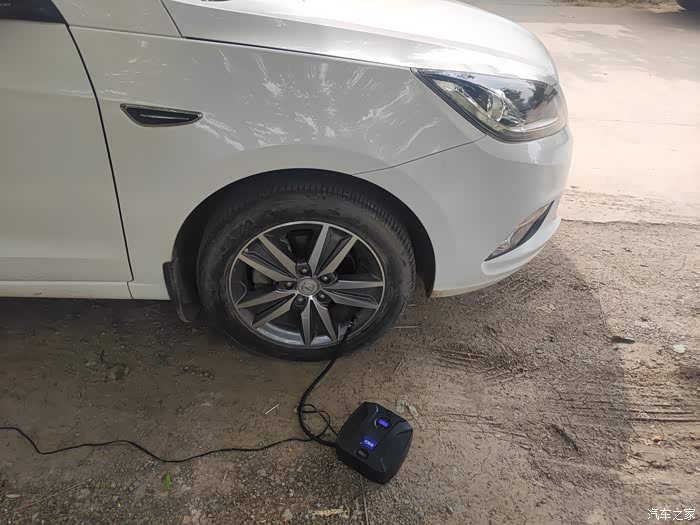 拿出我车上自备的充气泵,这是12V点烟器电源接电,以防不时之需