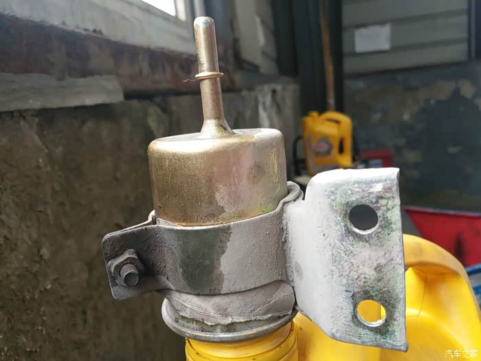 汽油滤芯位于后梁中部,师傅已经拆了下来