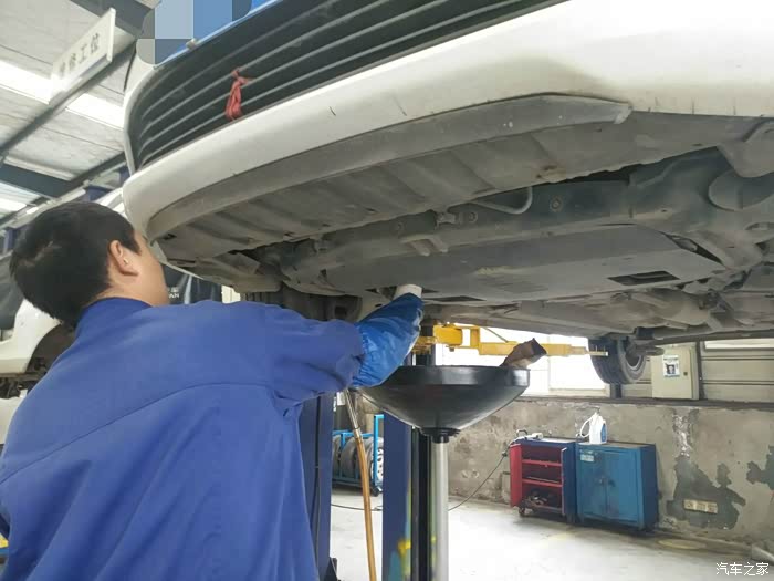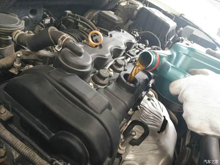 师傅开始为爱车倒上了新的机油