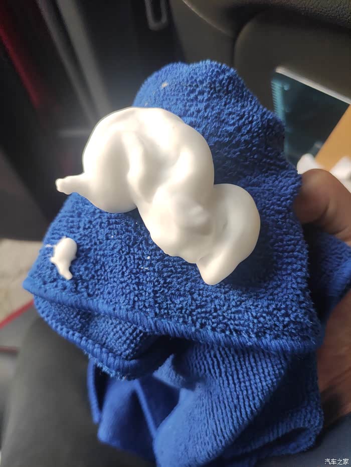 接下来就是洗放向盘和中控台了,就挤些在毛巾上