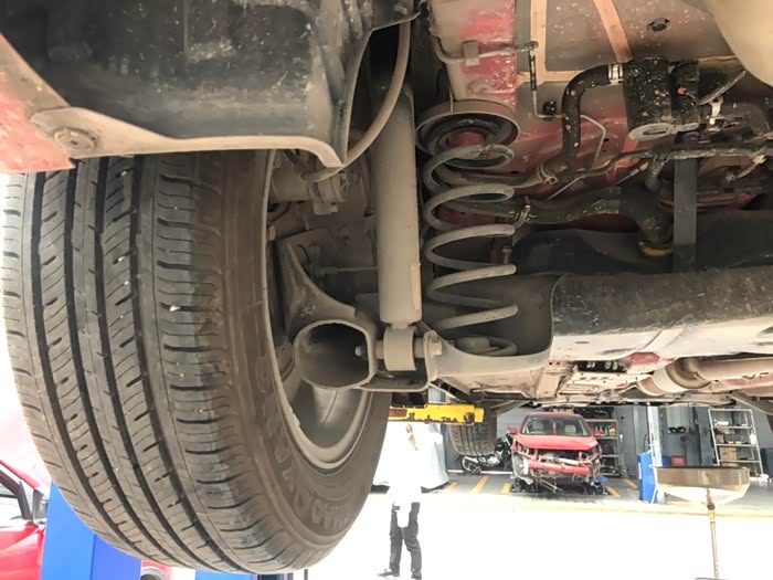 看看底盘,防锈做的不错。隔热瓦是后来加装的。底盘的质量可靠。快两年了还那么好