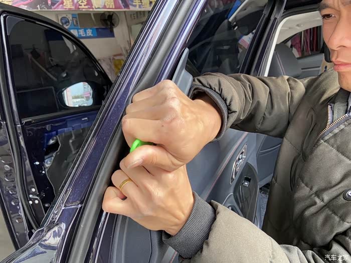 后门也拆开了,欧尚X7的做工没得说,师傅说这个🚗得20万往上吧,做工那么好,配置也很高,这不是我在夸,真是做隔音的师傅这么说的。