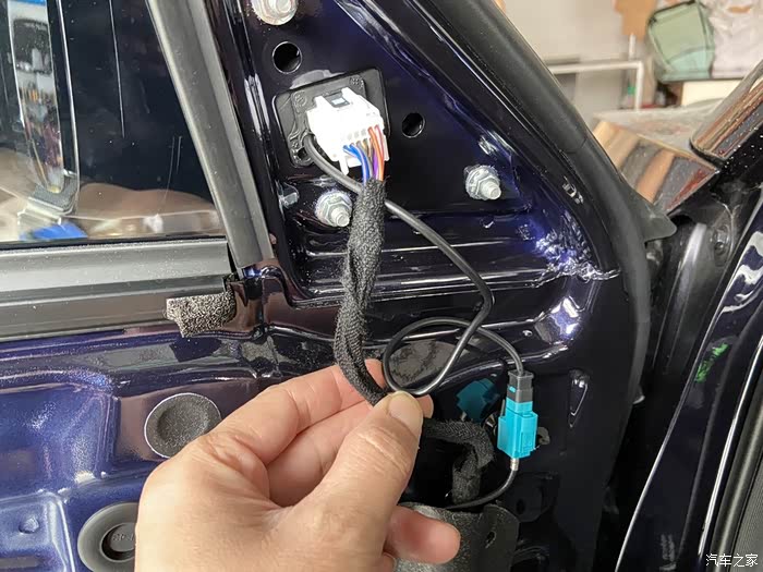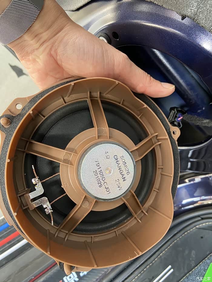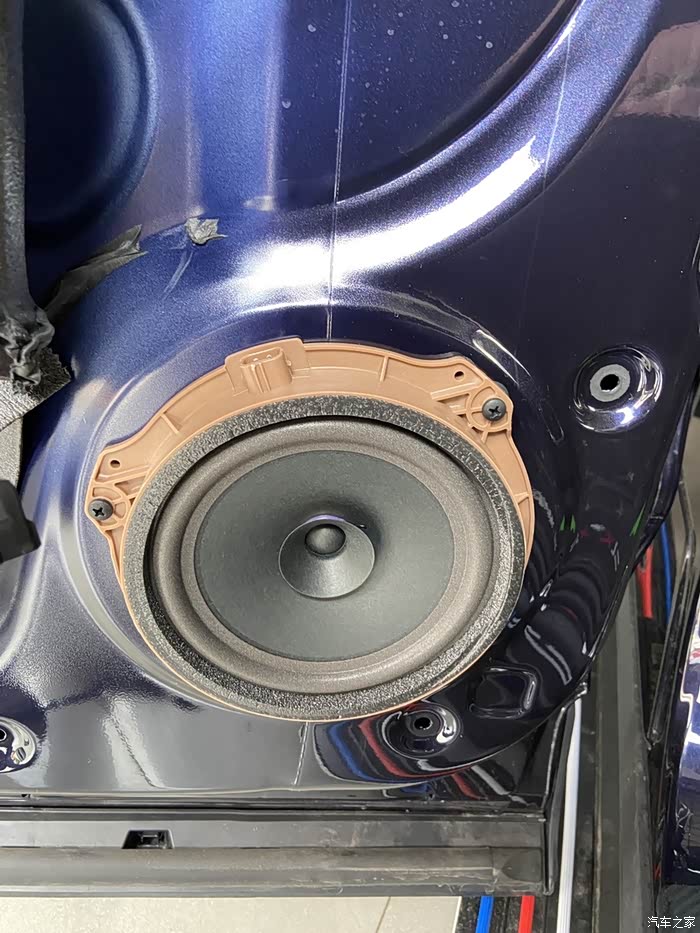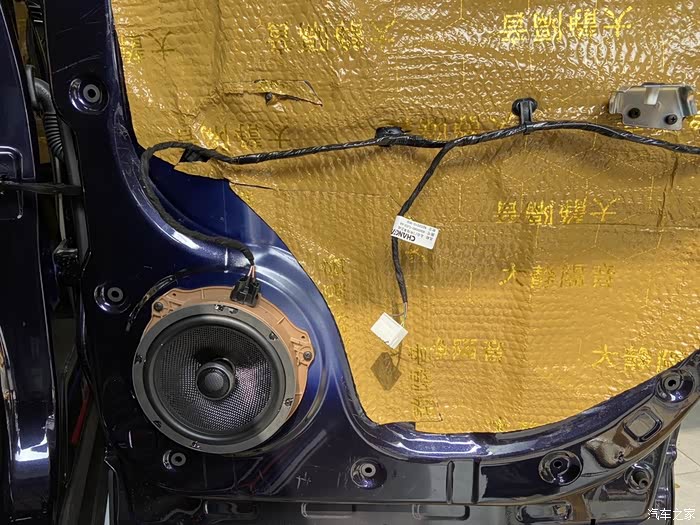 后门已经装好喇叭了,师傅手艺不错,用回原车喇叭插头。