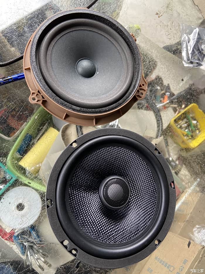 前门也装好喇叭啦,准备安装回去试听一下效果咯