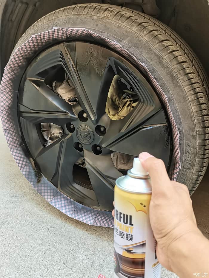 前后轮胎一定要全部一次性喷好!第一次喷的时候,距离十多厘米均匀的喷一遍一次,不要喷的太多,防止往下流