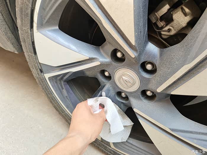 工作之前要用湿巾,先把轮毂上面的灰尘全部擦试干净!如果有条件的,最好洗一洗!