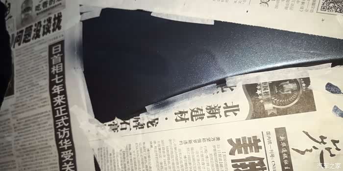 遮挡的方式十分重要,直接影响最后喷漆的效果。千万不要遮挡在漆面上(包括固定报纸用的粘胶也不要贴在漆面上)。只需遮住划痕周围重要部件(如车灯,轮胎,玻璃等)。因为喷上去的漆会有一定的厚度,如果遮挡在漆面上,漆面过渡会不自然,从而会形成补丁状的区域或者喷完后喷漆区域和原车漆交界处漆面会有明显的高度落差。