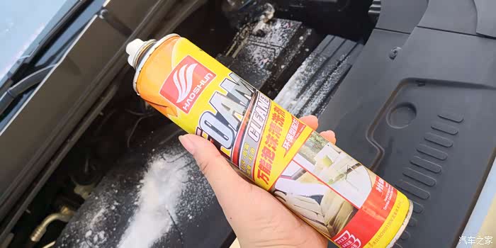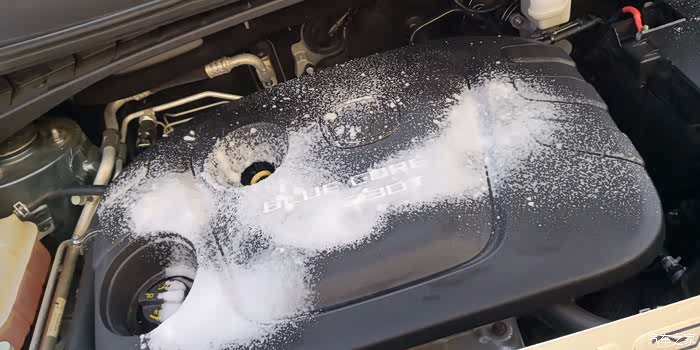 开始给发动机的机盖喷泡沫