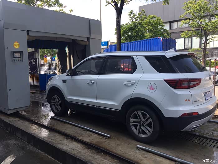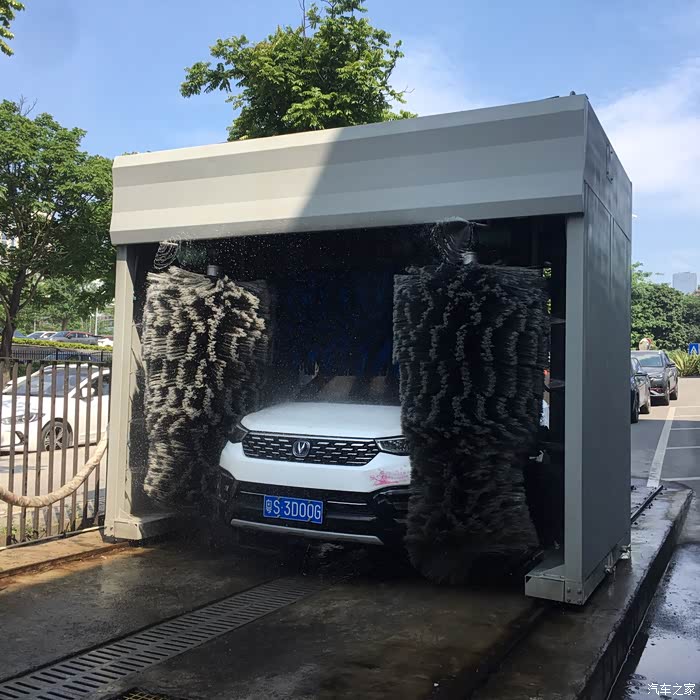 检查完车况后,进入洗车机,等待洗车