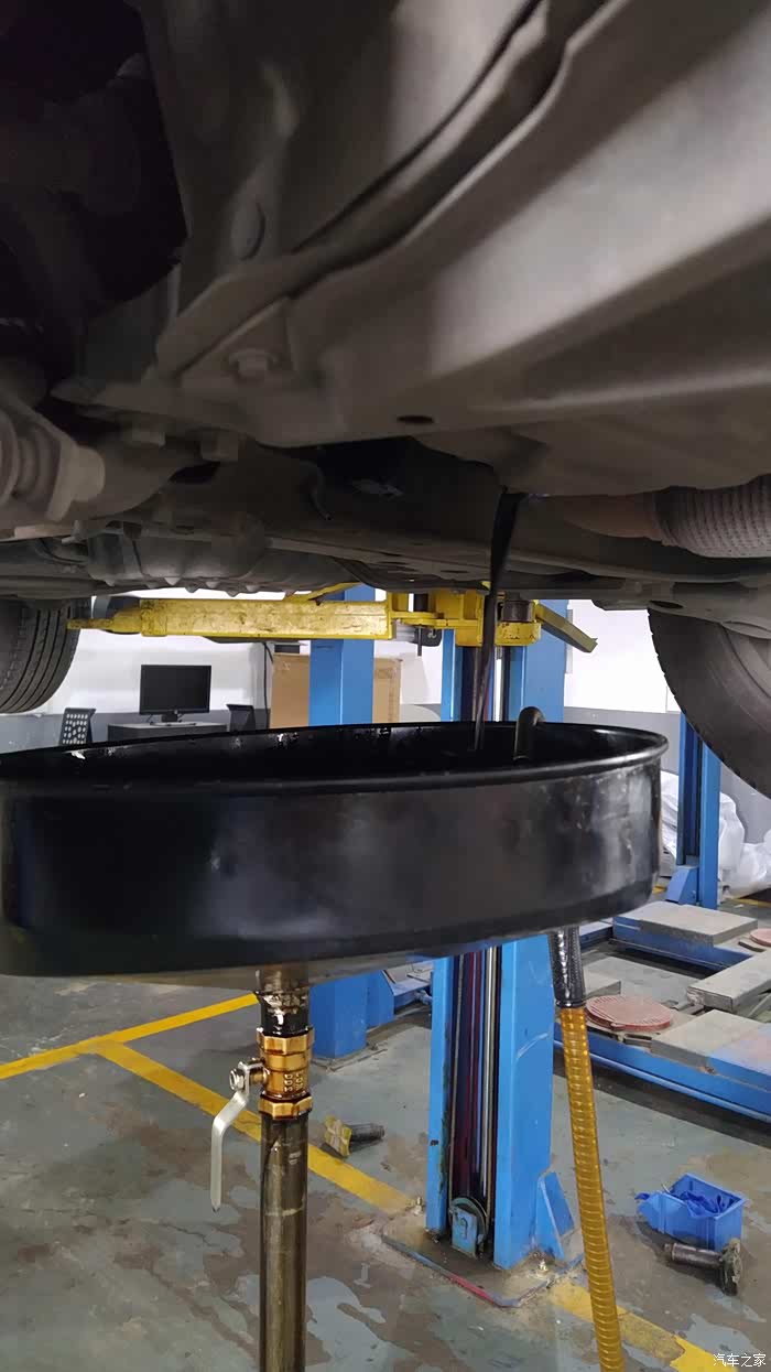 将车辆举起后开始放机油