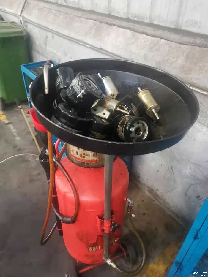 在休息区休息半个小时后,再来的时候,看到有更换下来的机油滤清器