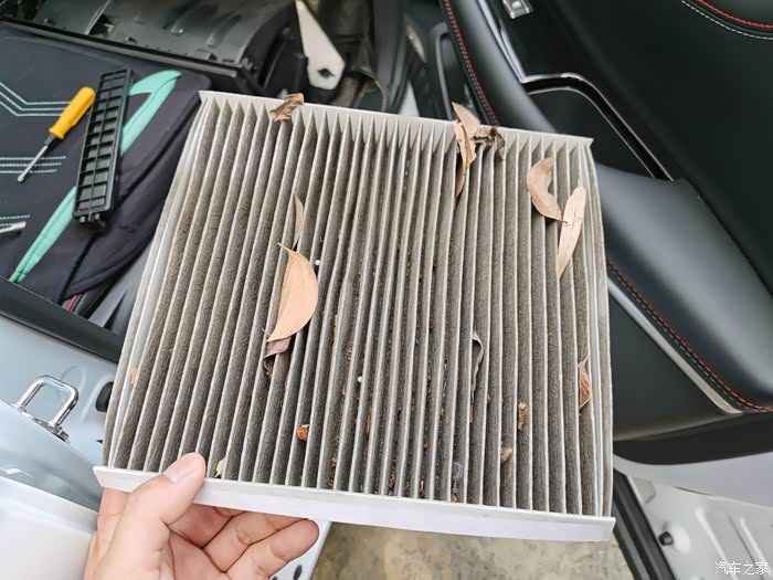 这滤芯还真不是一般的张啊,以后尽量不要停树下了,挡风玻璃下面水槽如果有树叶就及时清理了