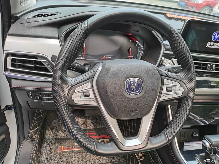 小柒的多功能皮质方向盘,采用了镂空式设计,在添以拥有金属质感的亮条点缀,看上去非常精致好看