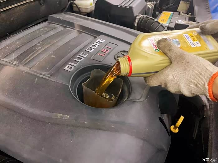 机油注入完毕拧上机油口盖