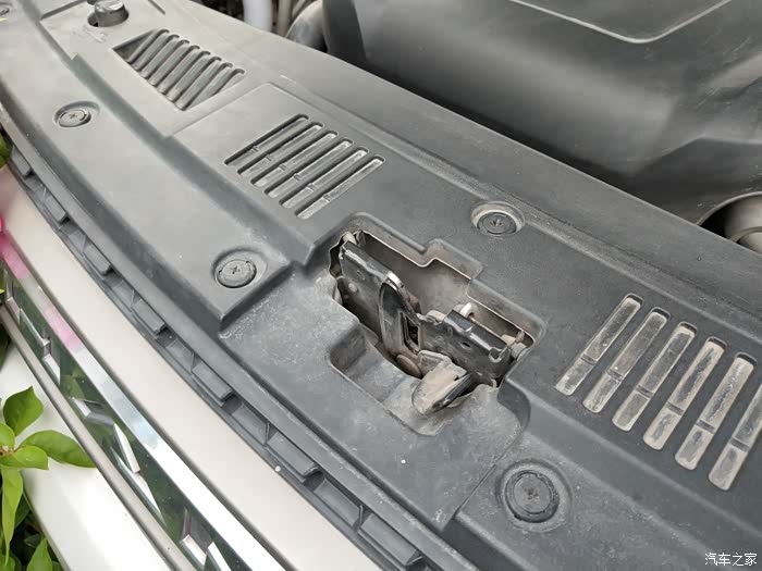 你看我们引擎盖弹了一条小缝起来,但是盖子并没有弹起来,这是因为我们还有一步没有做到位