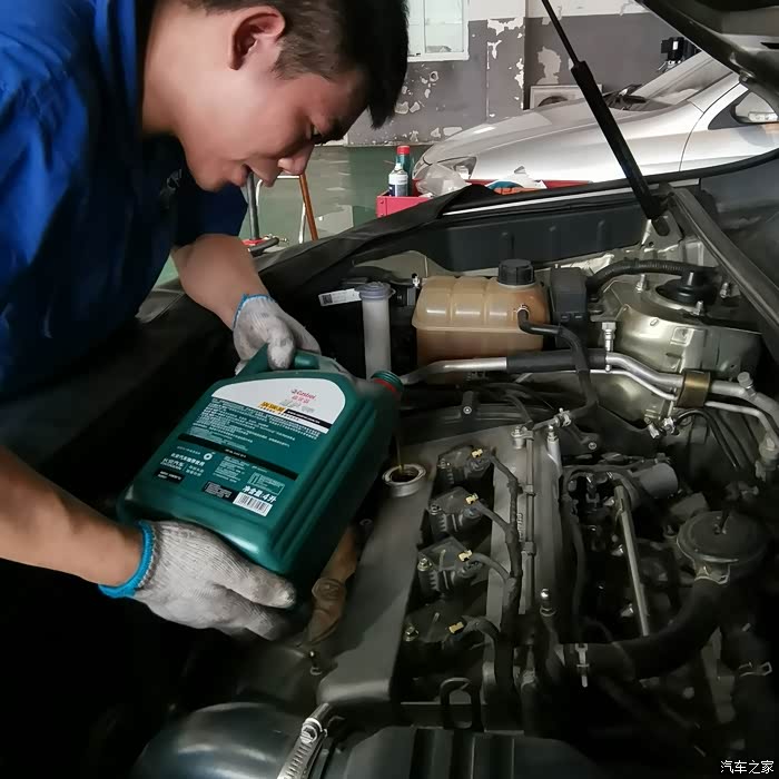 维修小哥添加机油