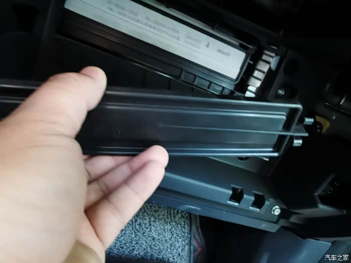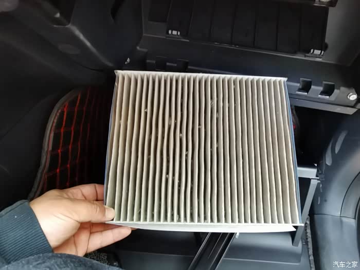 先把手套箱打开,把手套箱右边的限位往右推开,然后把手套箱左边的固定按钮往左弄开,手套箱就下来了。然后滤芯有个盖板,使劲往外拽就开了,然后滤芯卡子往中间按就能弄下来,就看到75plus的滤芯了。拆下来,看了滤芯,厂家还是挺讲良心的,PM2.5级别的,就是脏了,不然自己还不忍心换,自己买的真没有原厂的好。一款好车,不管在哪个方面,都会做到实处,正如75plus,每一处细节都是让人惊喜的。