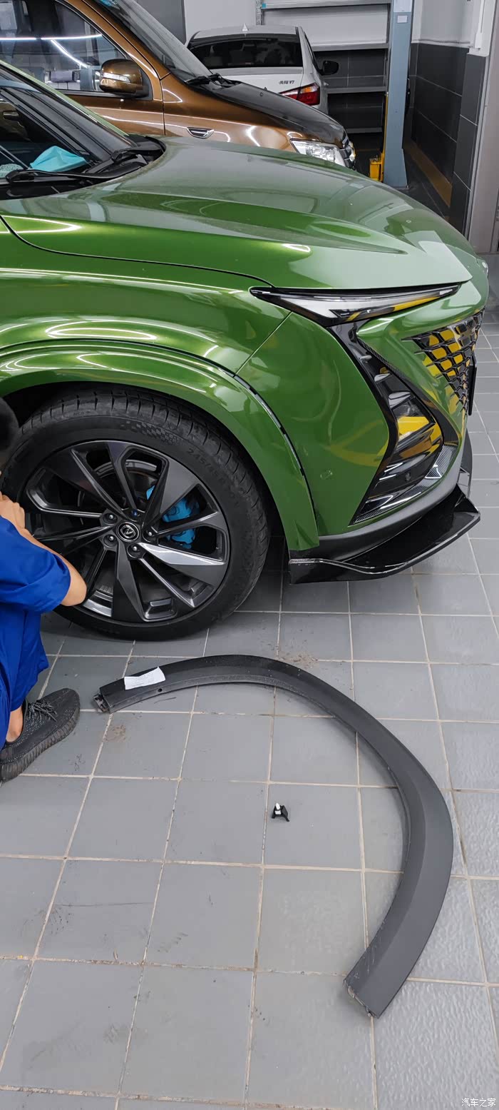 可是我个人对哑光面的材质真的没什么好感,感觉特别的塑料特别的廉价,车身本来就是明亮的,轮眉还那么粗,统一性上就出现了问题,如果轮眉能变成亮面多好。我目前知道的一共两种方法1.给原厂轮眉喷漆(可行性不知道高不高,之前我也问过一些专门的师傅,感觉不好喷,意思就是不耐用,也有技术好的,但是喷漆是真的贵)