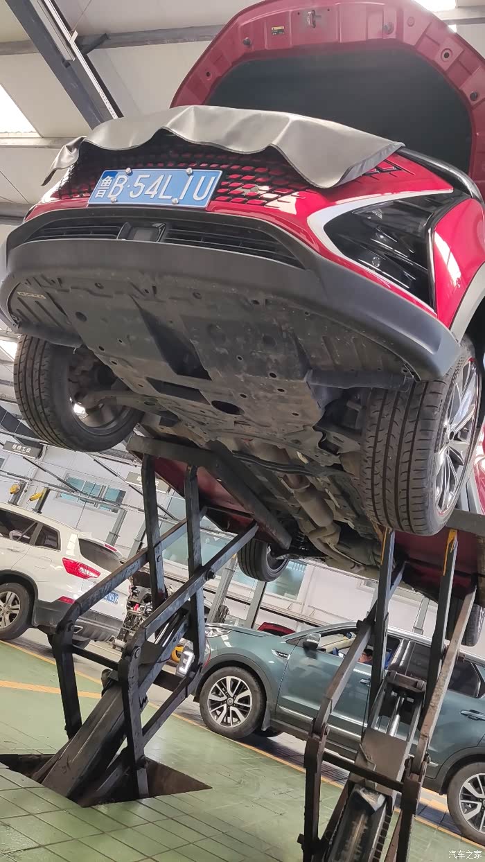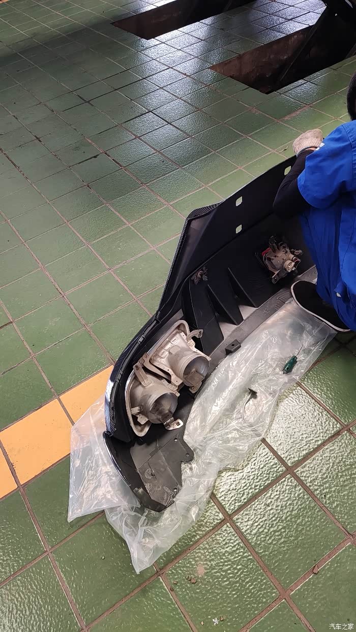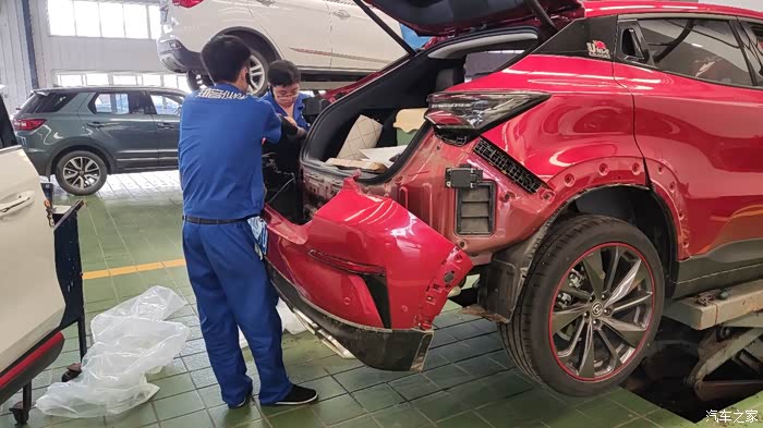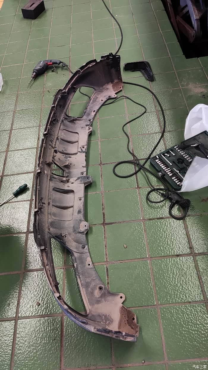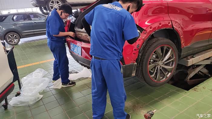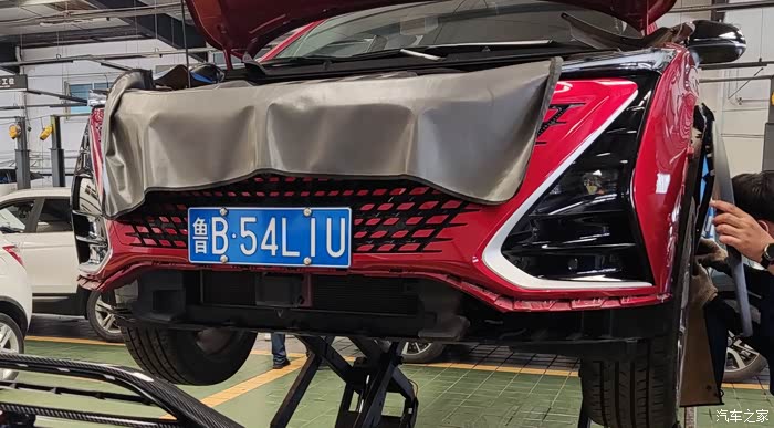 ④拆前保险杠这一步,我这4S店是选择了车放上升降机,然后拆保险杠,只换前包围即可。