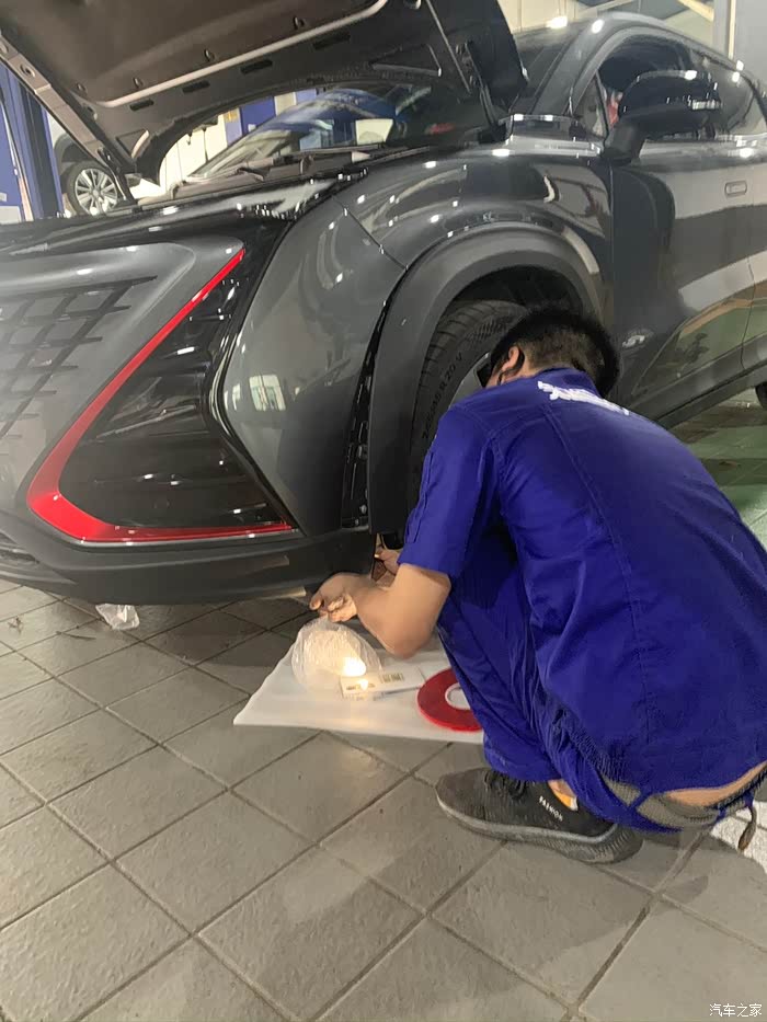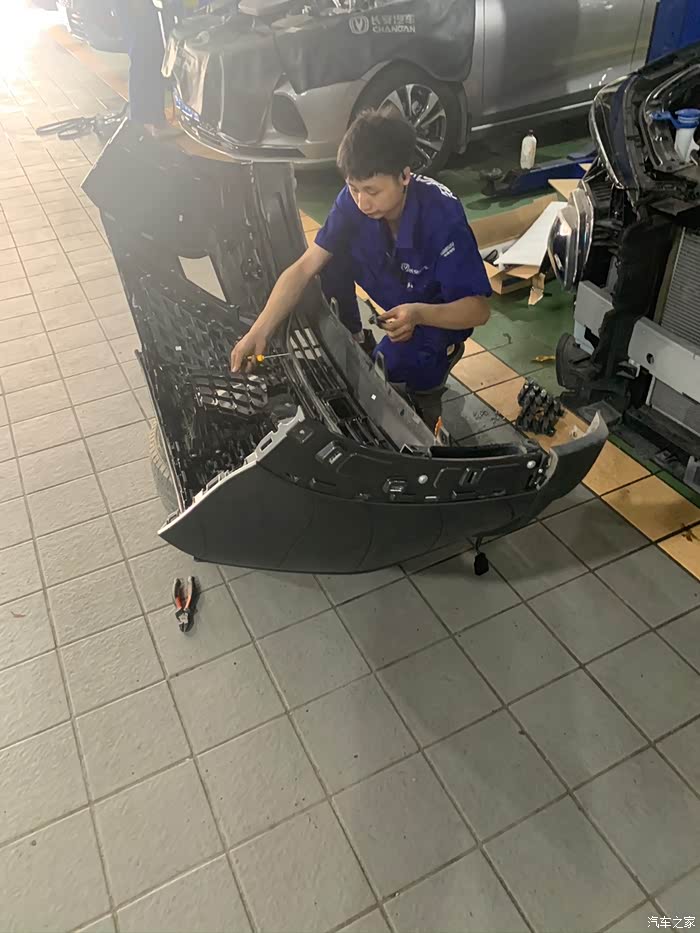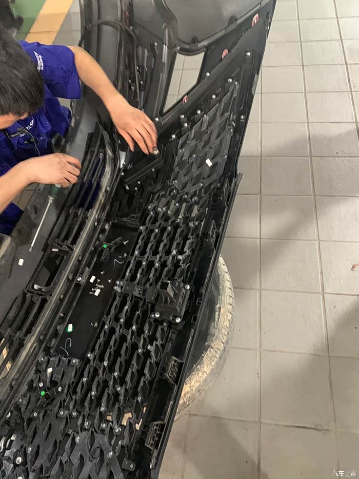 前脸流光灯装好,前杠安装回去