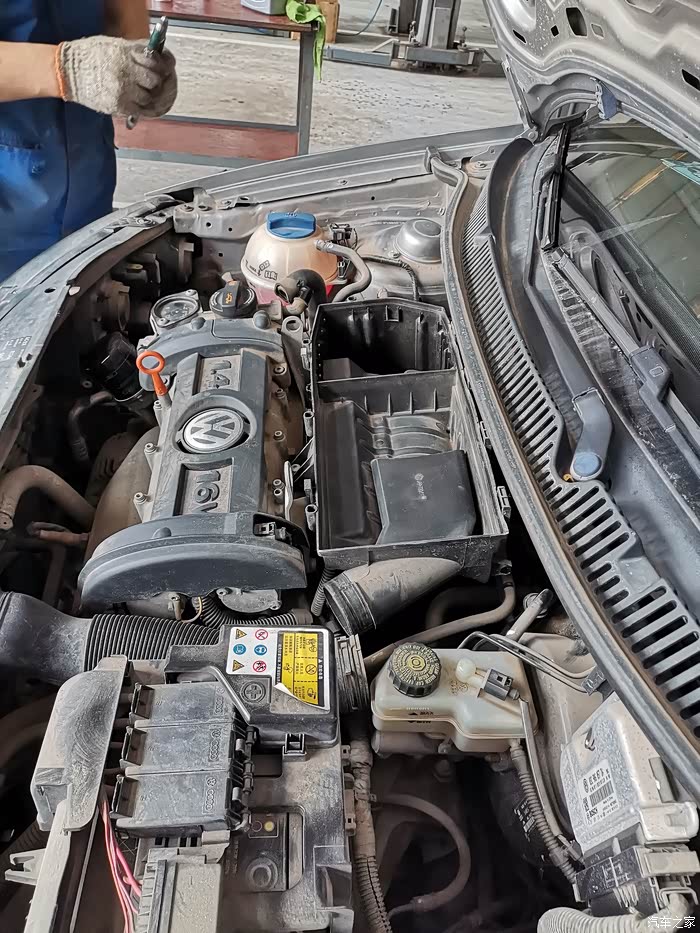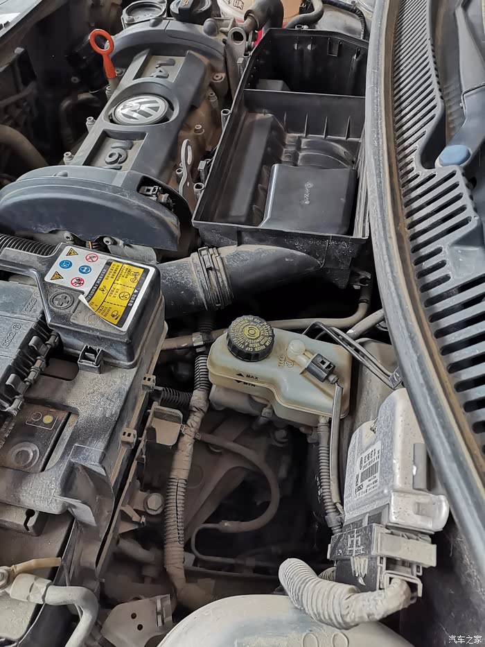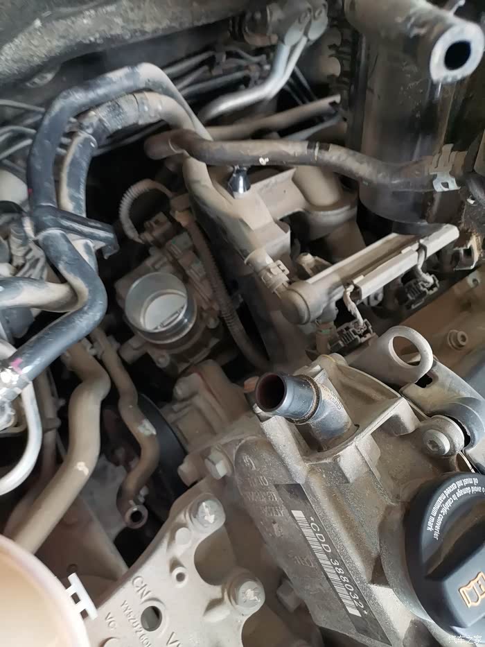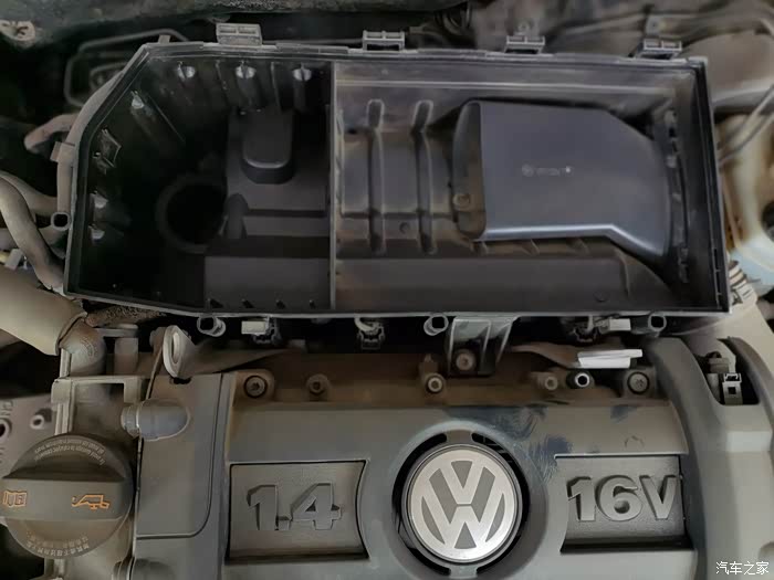 POLO的节气门就在空气滤清器按装位置的左下方(近景照片)