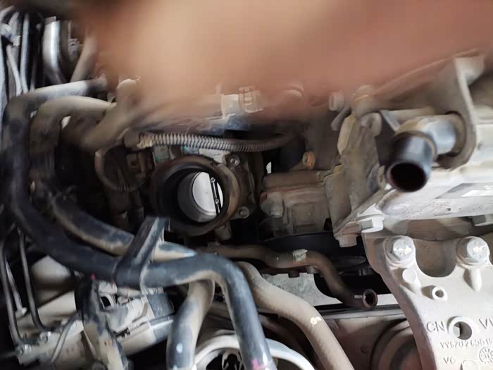 节气门与防冻液壶连接软管被拆卸下来。