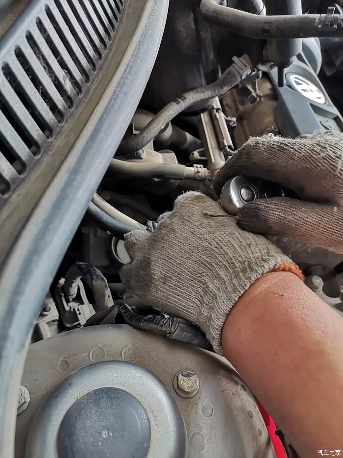 师傅又拧下空气滤清器按装位置紧固螺丝。