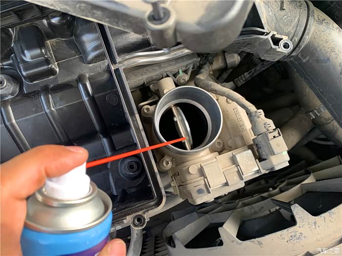 接下来就使用节气门清洗保护剂。