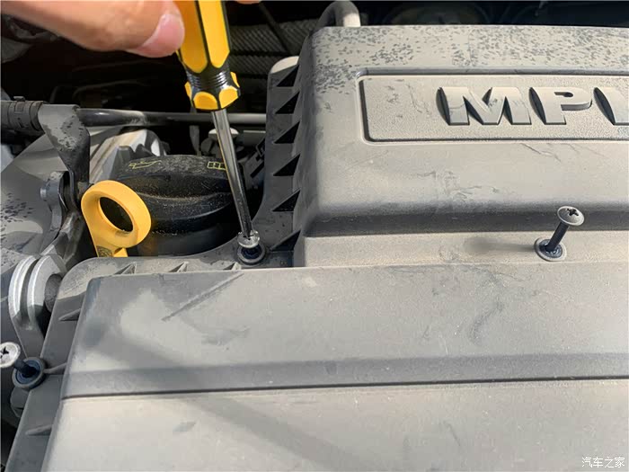 然后找到滤芯盒,用十字螺丝刀依次把九个螺丝拧下。
