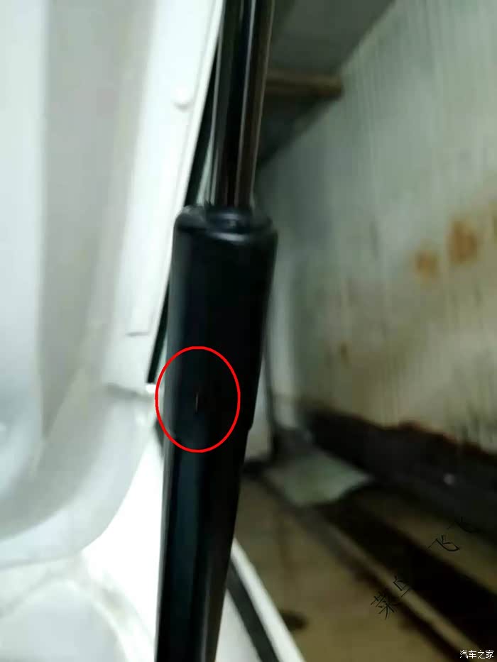 看很多车友的车子都是这里裂纹,应该是从液压杆内部裂开的,不过问题不大,并不会影响支撑杆的液压效果