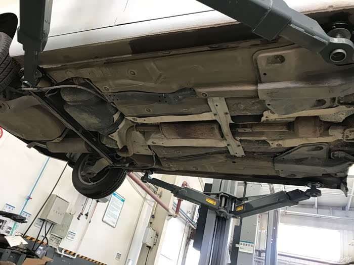 第一步上架子。看看我的底盘,下面看着怎么像是生锈的,问了下说是有涂层,只是脏的。