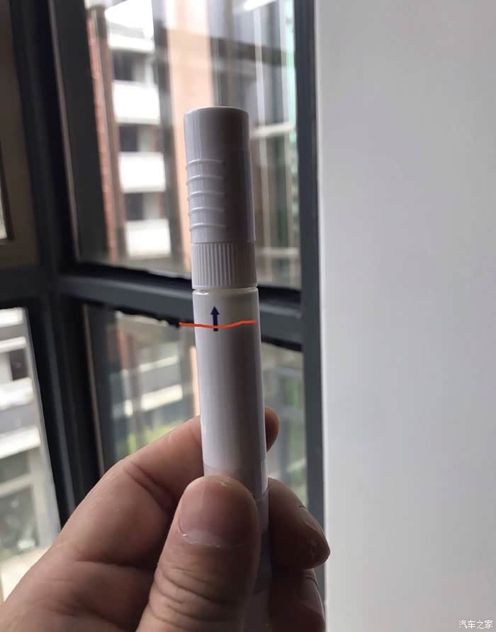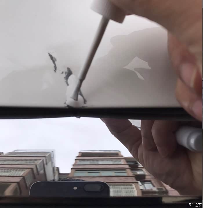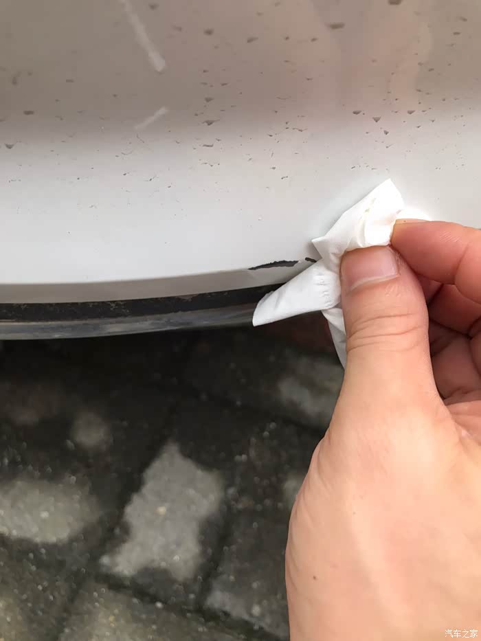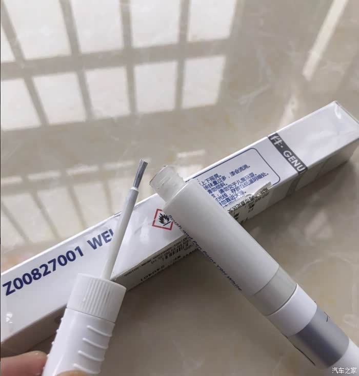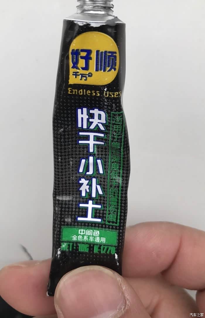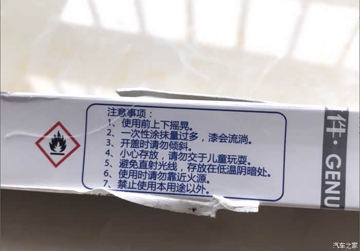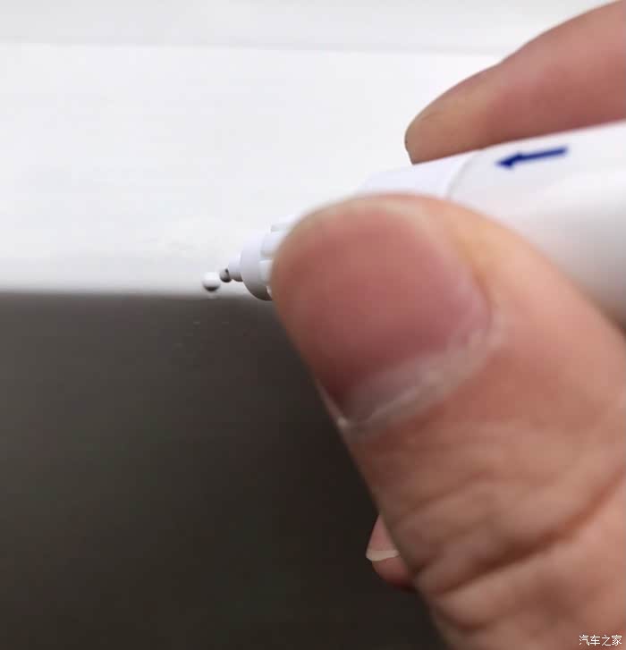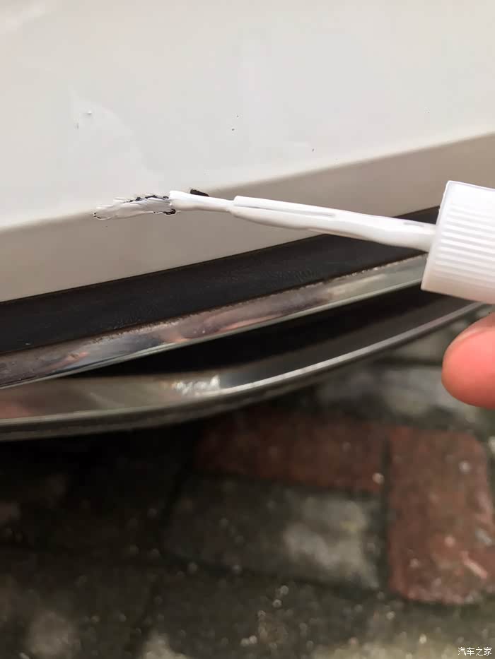 绕车走了一圈又找到一个需要补漆之处,立马开补,这次用笔尖头补。位置很小,所以这个很好补。